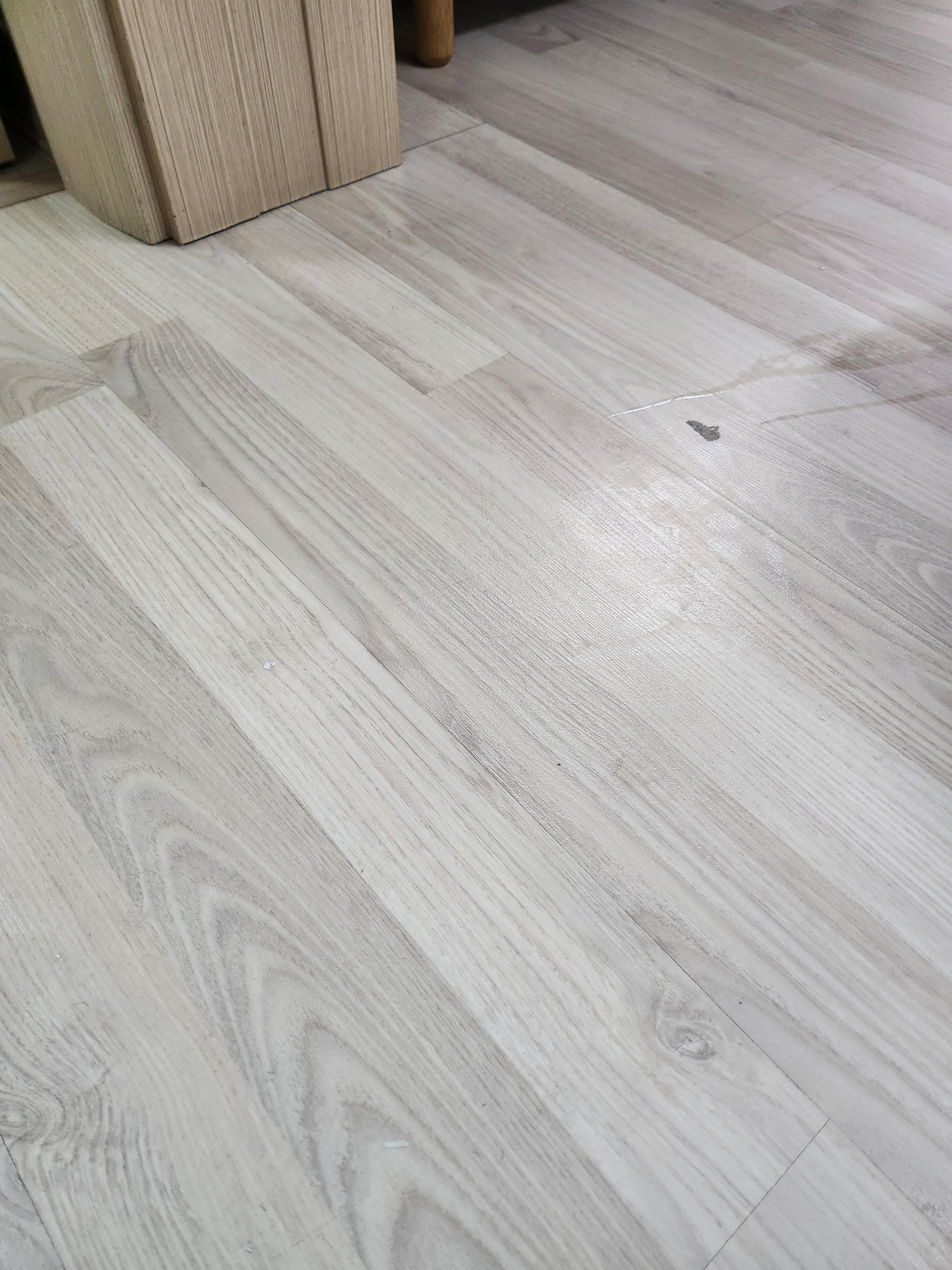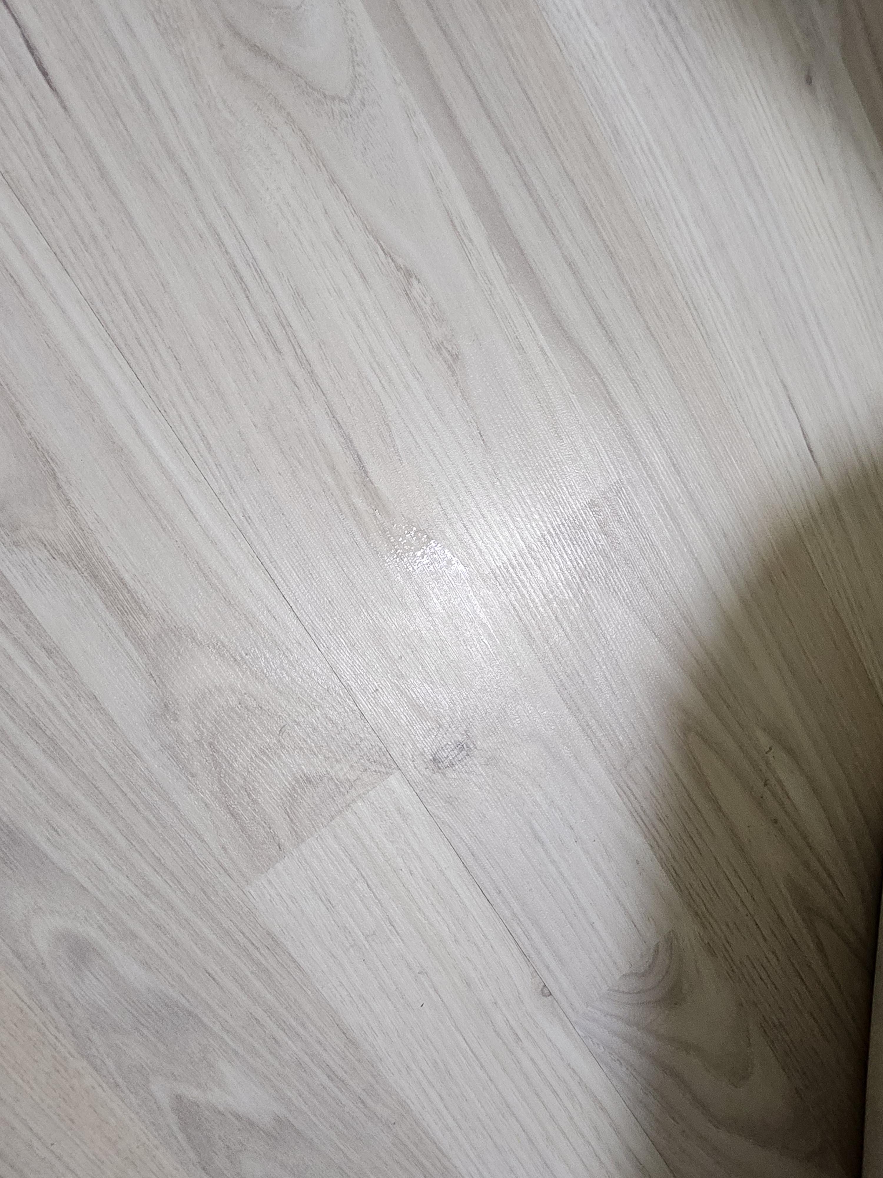 하루종일 걸려 도배를 한 결과 깨끗해진 벽과 달리 바닥은 끈적끈적 해졌어요.