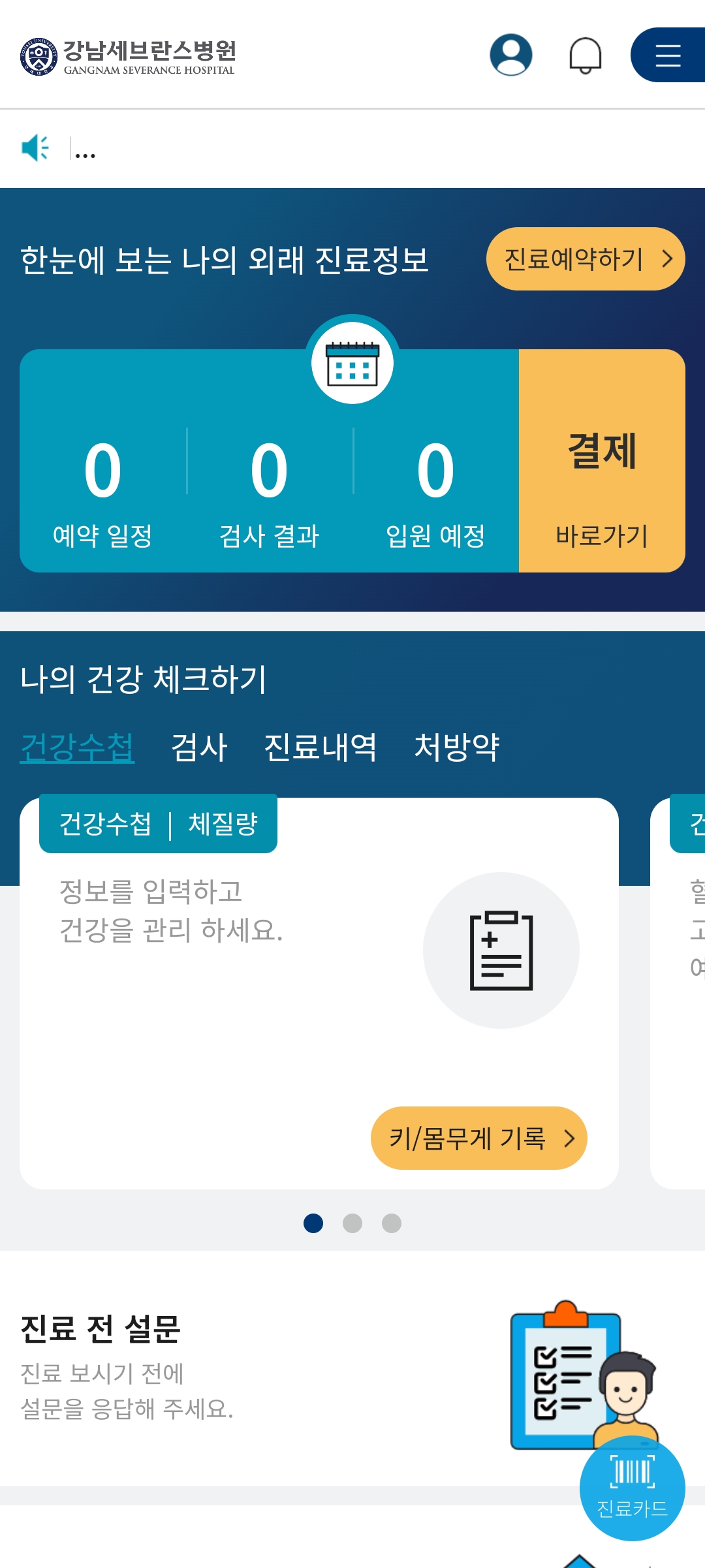 우선 강남세브란스 어플을 설치 후 로그인한다.