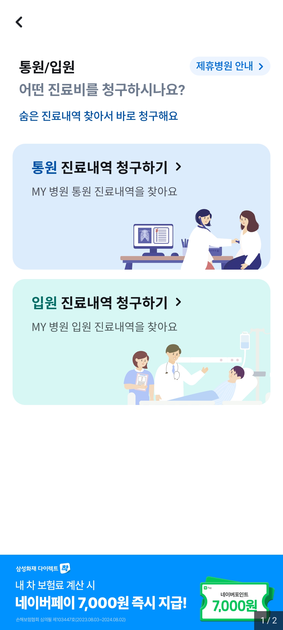 살짝 내리면 실손의료비 청구 탭이 있다.