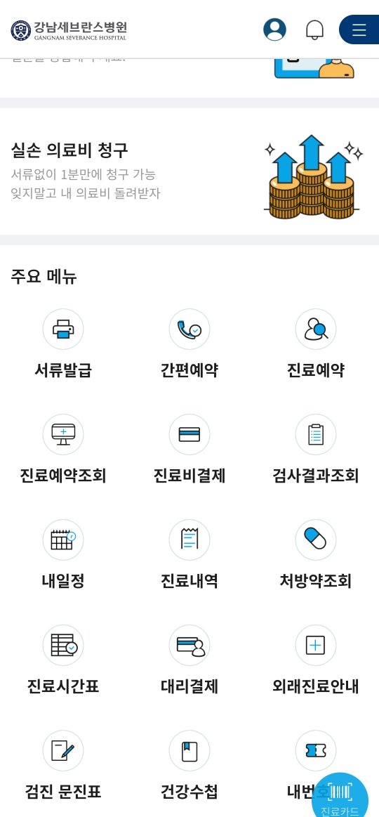실손보험 청구 외에도 보상금 찾기, 진료 예약 등을 할 수 있으니 한번씩 이용해보면 좋을 것 같다.
