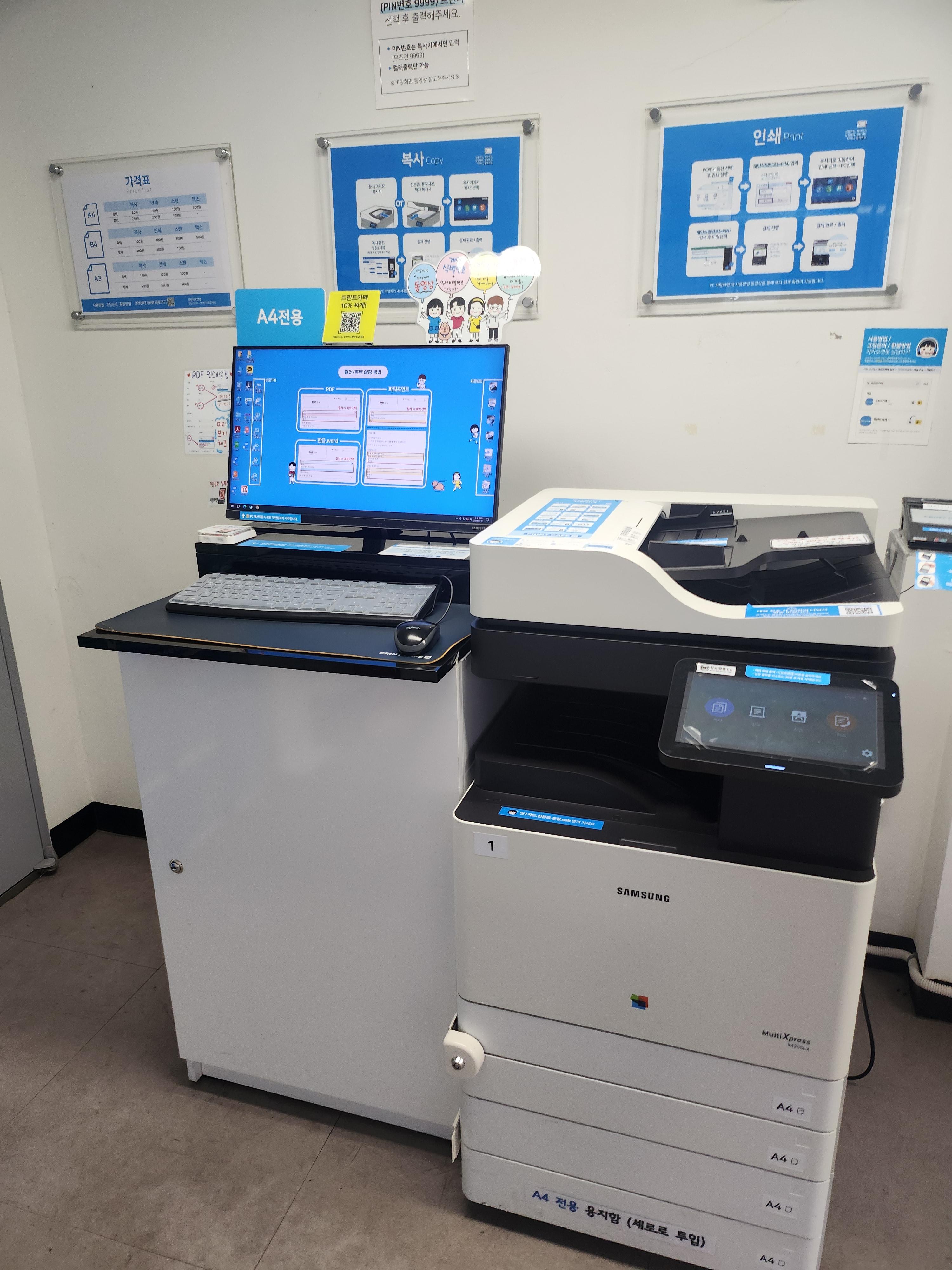인쇄, 복사, 팩스를 할 수 있는 24시 프린트카페다.
