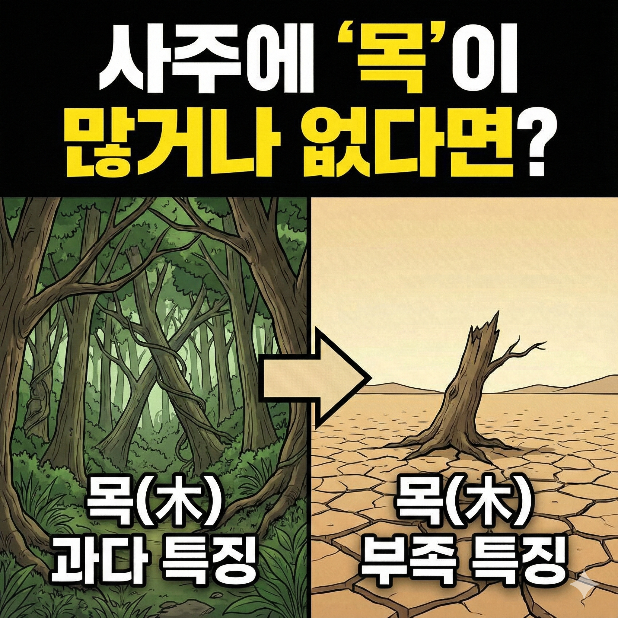 하지만 과유불급이라는 말처럼, 이 나무 기운이 내 사주에 너무 많거나(과다), 반대로 아예 없으면(무목) 인생에서 뚜렷한 특징과 장단점이 나타나게 됩니다.