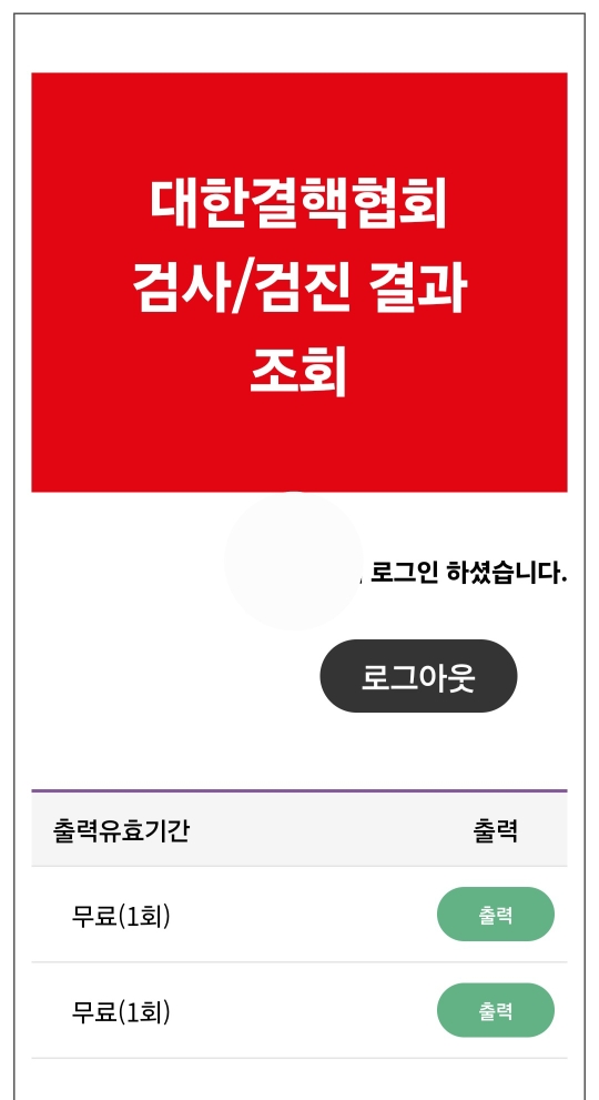 잠복결핵검사 확인서와 진단서를 무료 1회 출력 가능합니다.