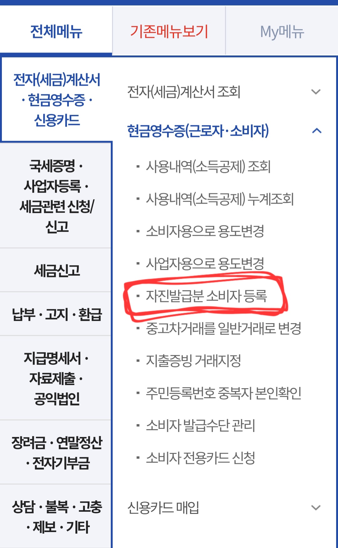 만약 여러분이 누른 번호가 없는 번호였거나, 직원이 임의로 국세청 지정번호로 발급했다면(자진발급) 정말 다행입니다. 이 경우엔 매장에 다시 갈 필요 없이 홈택스에서 1분 만에 내 것으로 등록할 수 있습니다.