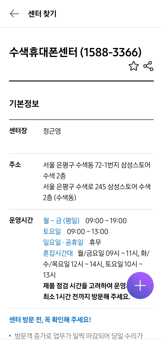 금액도 부담스럽고 정 떨어져서 쓰기도 싫었다. 그냥 원래 쓰던 폰에 sd카드를 꽂아서 쓸까 하다가 혹시 몰라서 시간 내어 삼성 서비스 센터에 갔다.